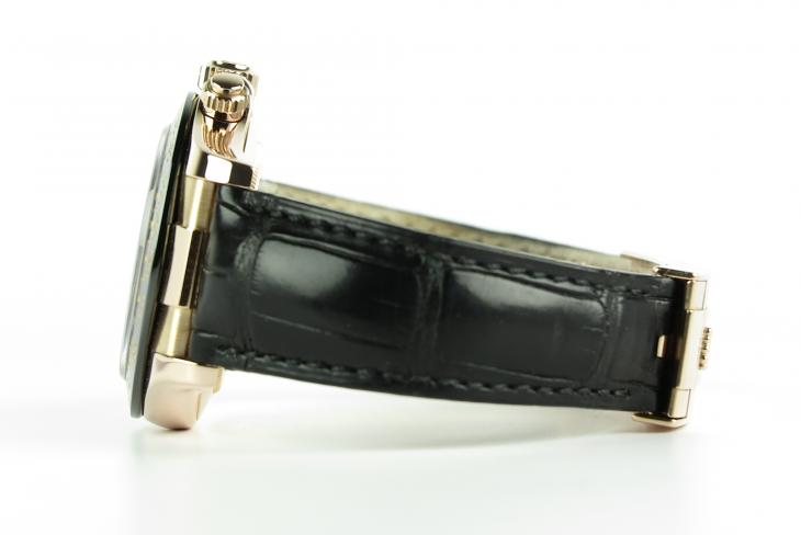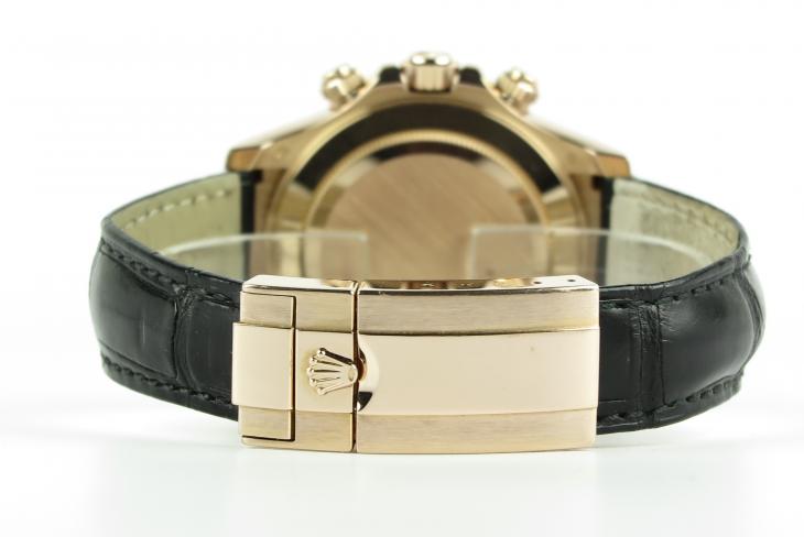 40 mm 18 karat everrose gold Daytona med keramisk lynette.Værket er et Cal 4130 med automatisk optræk. Uret kommer på en original krokodilleskinds rem samt et foldespænde i 18 karat everrose gold. Komplet sæt med Klarlund certifikat samt service i 2017.