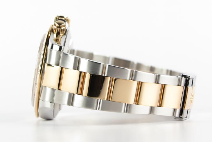 Flot Daytona guld/stål med sort skive. Uret måler 40 mm og er med automatisk optræk. NB.: Fået komplet service ved Rolex nov 2017.