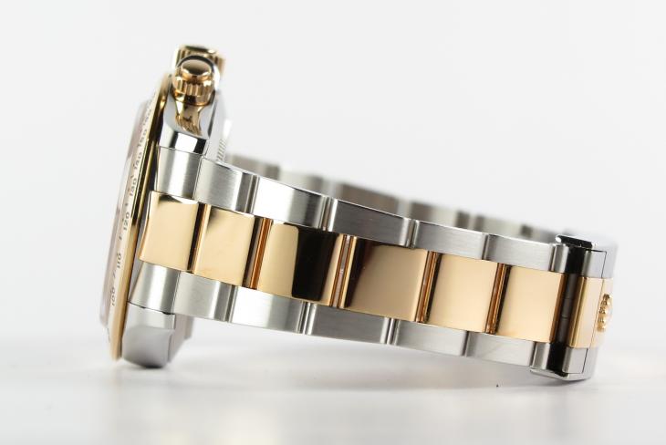 Rigtig smuk Rolex Daytona i guld/stål med sort skive. Uret måler 40 mm og er med automatisk optræk. Solgt fra DK forhandler 10. mdr 2015.