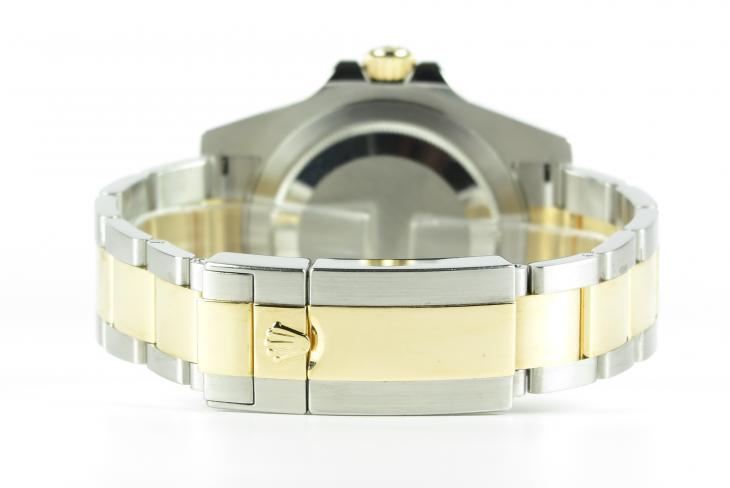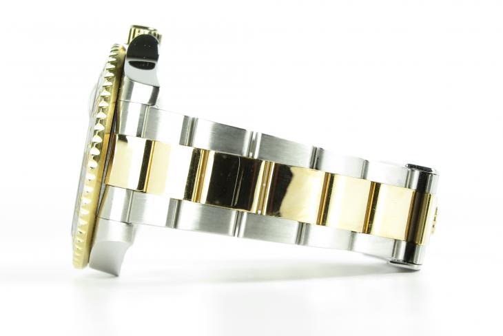Rolex GMT master II i Guld/Stål med keramisk lynette Værket er et Rolex in-house Cal. 3186 med automatisk optræk. Uret måler 40 mm.