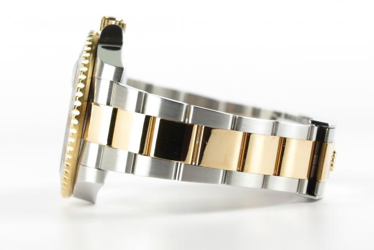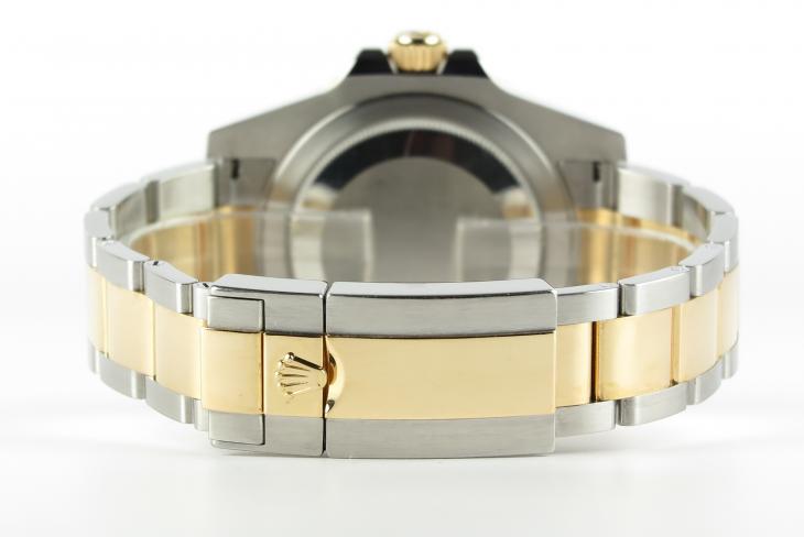 Rolex GMT master II i Guld/Stål med keramisk lynette Værket er et Rolex in-house Cal. 3186 med automatisk optræk. Uret måler 40 mm.