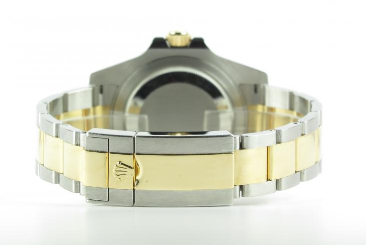 GMT Master i guld/stål Uret måler 40 mm. Værket er med automatisk optræk. Uret har fået service ved Klarlund i 2015.