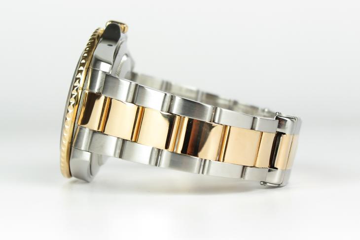 Super lækkert GMT-Master II udført i guld og stål. Uret er med sort skive og lynette, det er en D-serie, uden stiftehuller i kassen. Det måler 40mm og er med automatisk optræk. NB.: Uret er med danske papirer fra Klarlund i København.