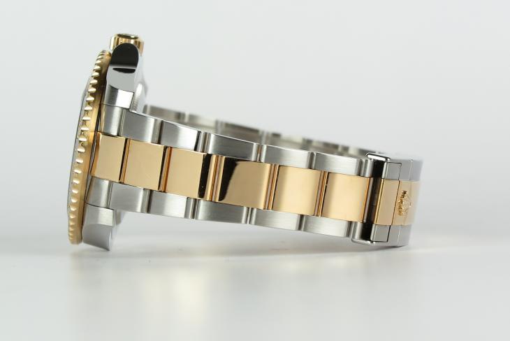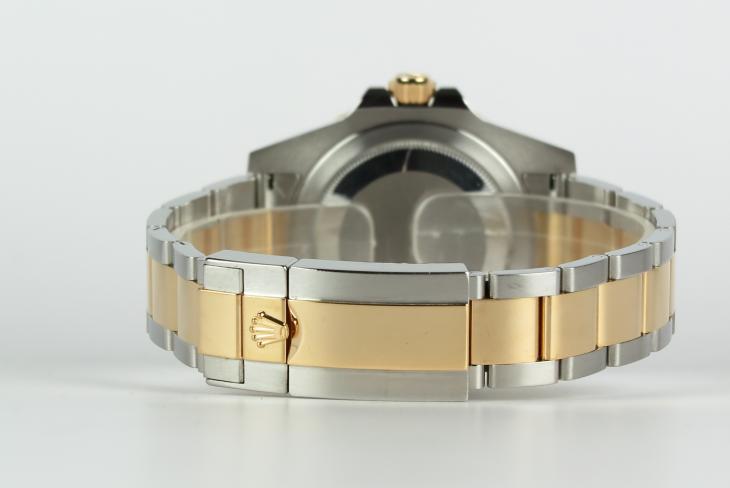 Nyeste model af Rolex GMT Master i guld/stål udgaven. Uret måler 40 mm og er med automatisk optræk.