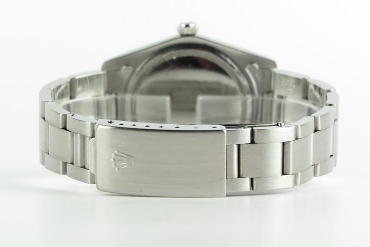 Fin ældre Rolex med boks og certifikat. Uret måler 34 mm og er med manuelt optræk.