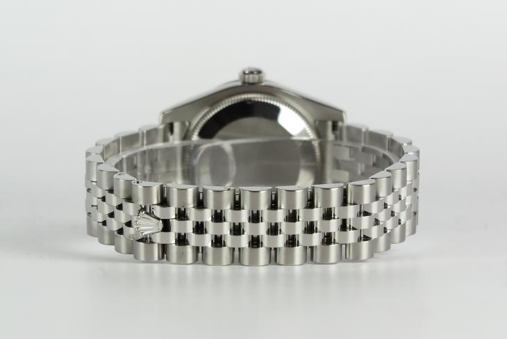 Rolex Oyster Perpetual Midsize 31mm. Uret har en fin jubilee lænke og skiven er karakteristisk ved sine rosafarvede index streger.