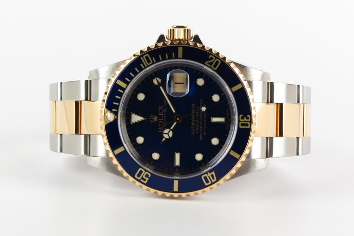 Her er tale om et yderest velholdt eksempelplar af den udgået Rolex Submariner guld/stål. Skiven og lynetten har den smukkeste flotte farve, kassen er rigtig fin og skap og minimalt stræk i lænken. Uret måler 40 mm og er med automatisk optræk. Solgt fra Klarrlund i 2003 og kommer som komplet sæt. Uret har seneste fået service ved Klarlund i 2018.