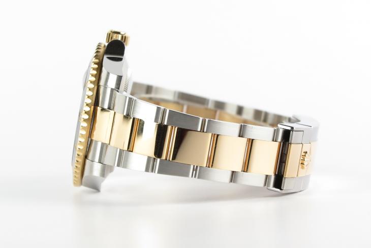 Smuk Submariner i guld/stål med skort skive. Uret måler 40 mm og er med automatisk optræk. Komplet med DK papir og kun brugt et år (taget i brug midt 2018).