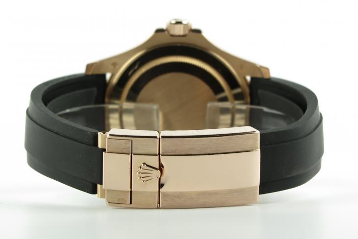 Yacht Master i everrose gold og med oyster-flex lås. Uret måler 40 mm. Værket er med automatisk optræk. Komplet sæt fra dansk forhandler 2016