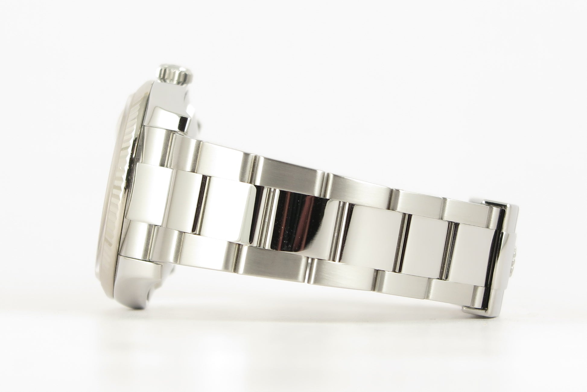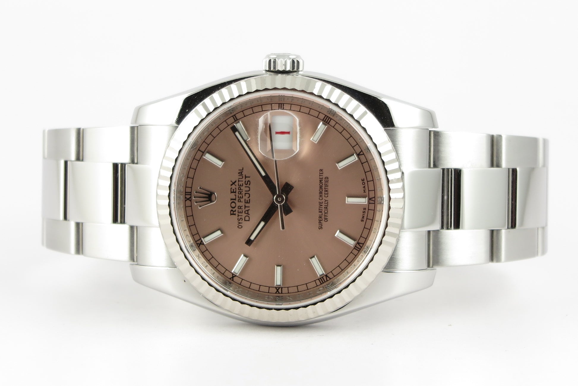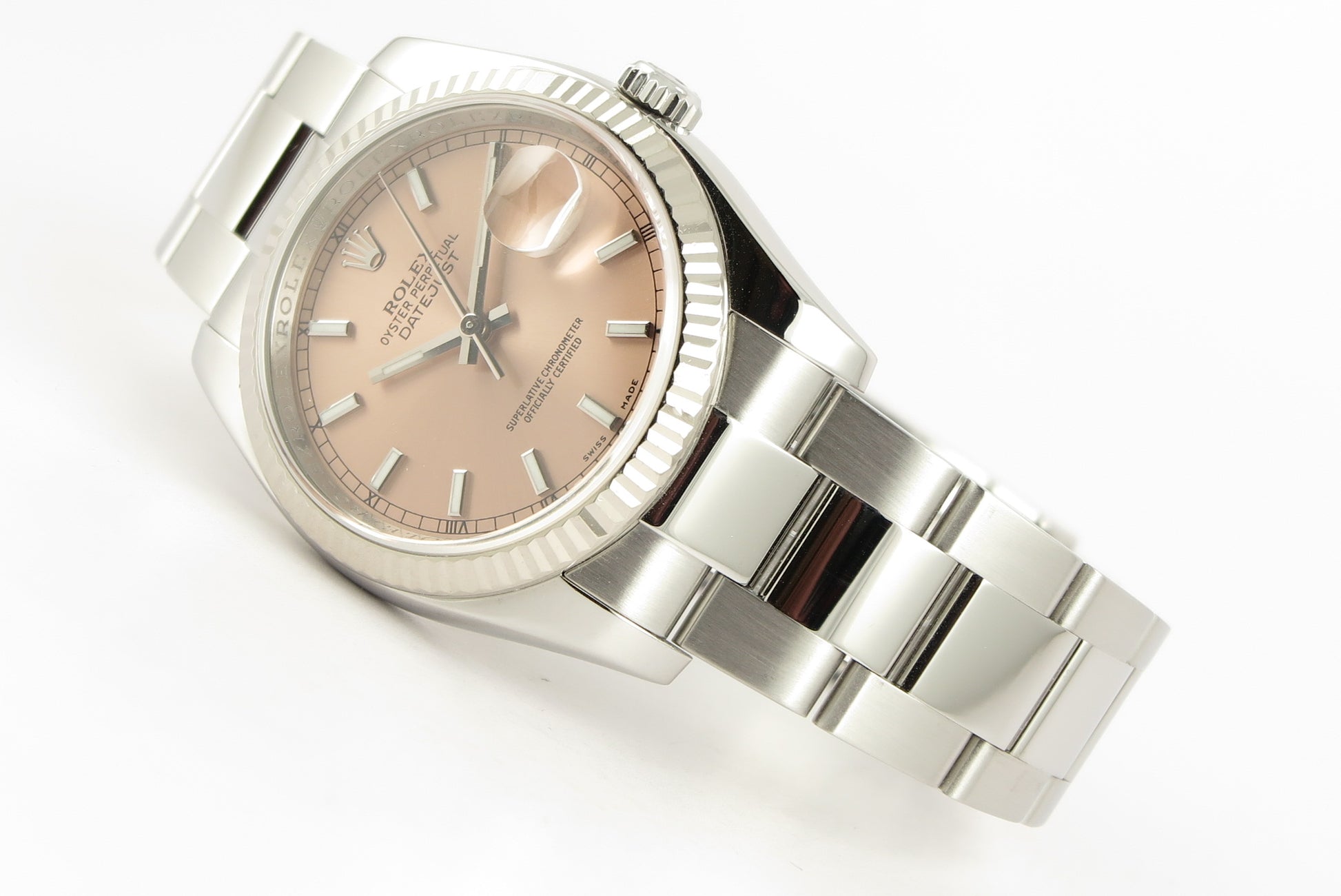 Flot Datejust på Oyster lænke og med pink skive.